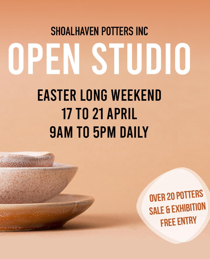 We will be hosting our second Open Studio during the upcoming Easter Long Weekend. Selected pieces created by our members will be exhibited and most of them will be available for sale.Our local artists have poured their hearts and souls into creating beautiful ceramics. Don’t miss out on your chance to have a close look, a chat and maybe own one of these unique pieces.Make a day of it by visiting our neighbours, the Shoalhaven Art society who are holding their annual art sale on the same dates at Pyree Hall, 880 Greenwell Point Road.The official opening will take place on Saturday 19th April at 11am. All welcome.Save the date, spread the word. We can’t wait to welcome you into our world of clay and glazes!